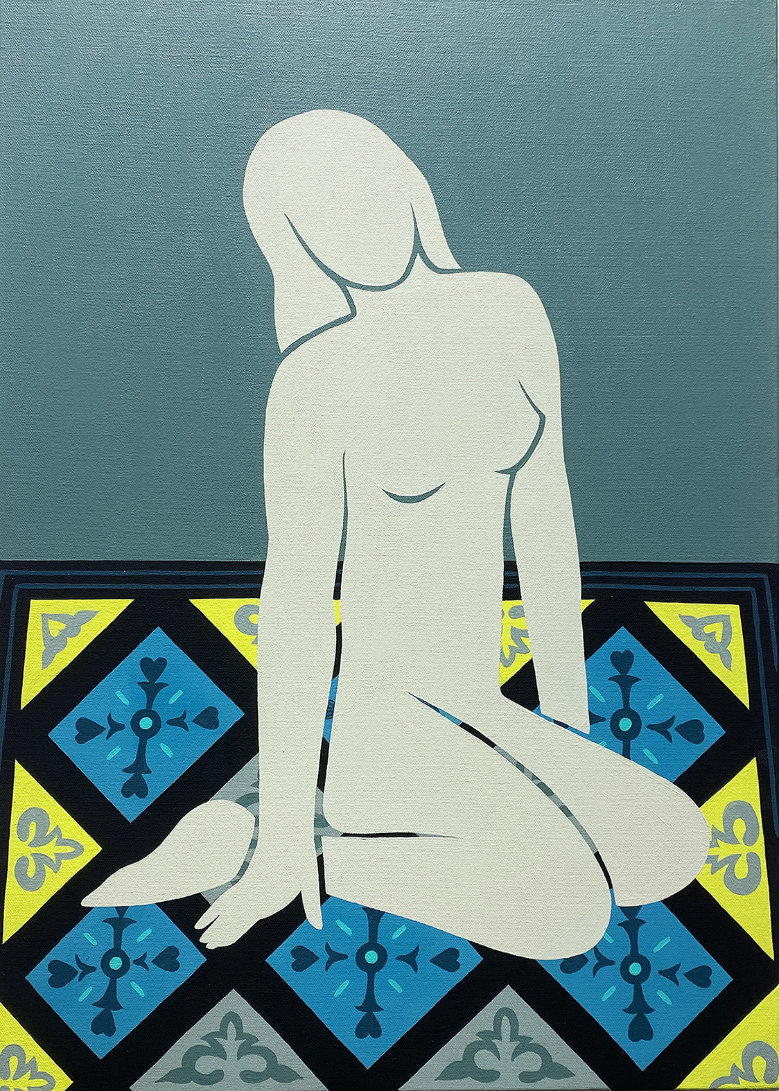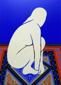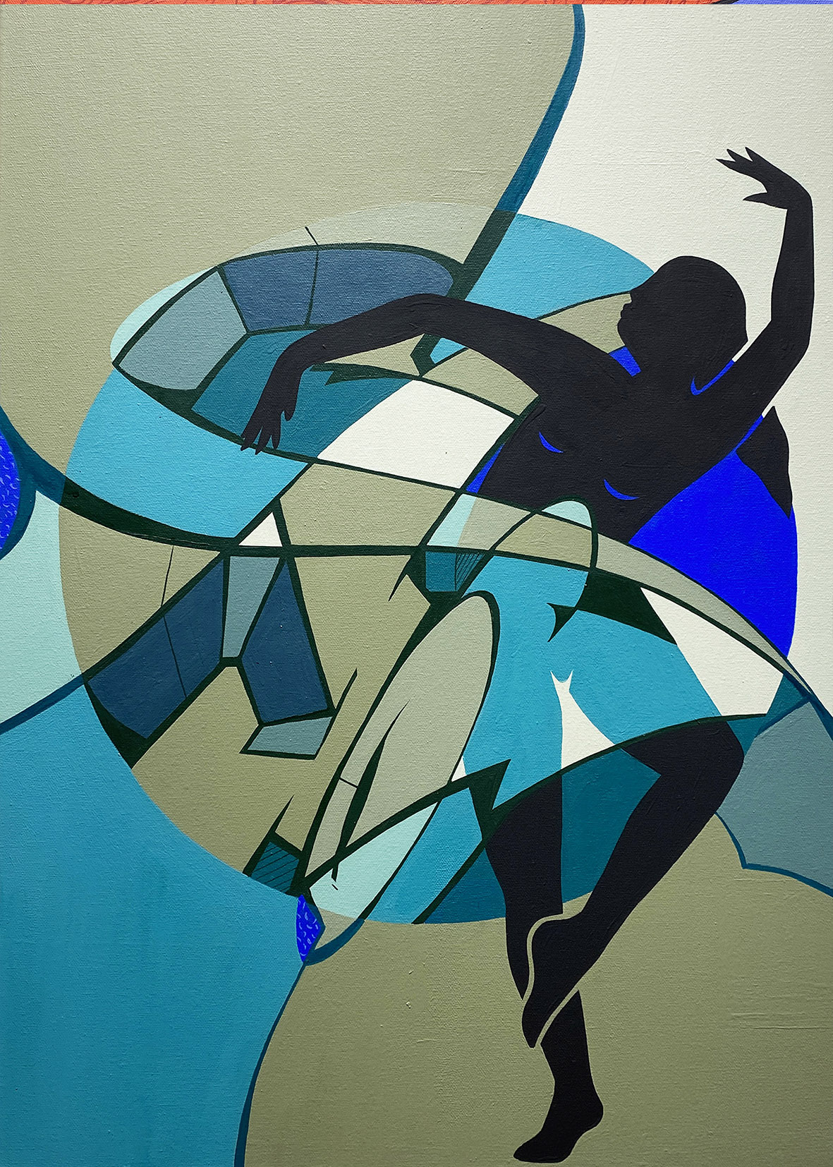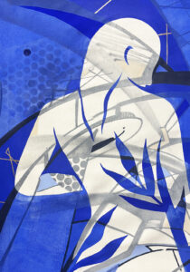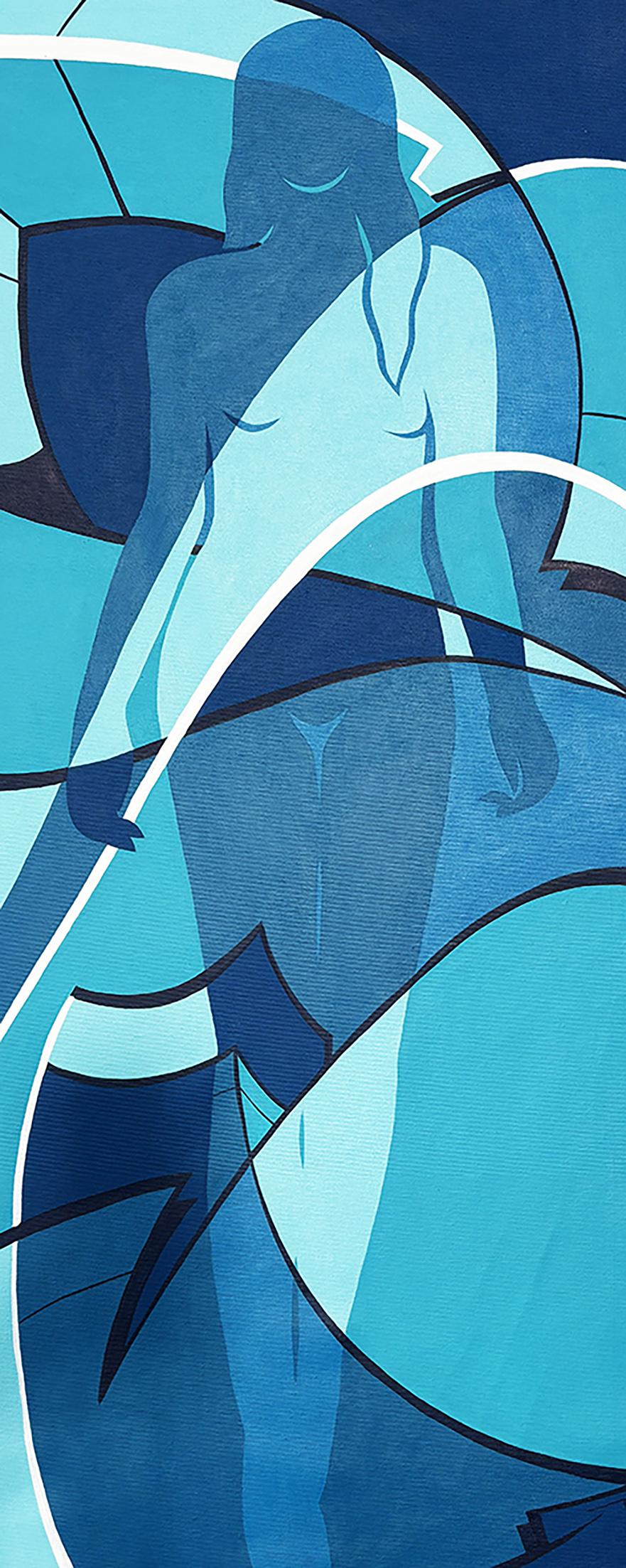 D’un côté, des femmes graphiques, libres et douces de Julia. De l’autre, des lignes énergiques de Cédric, comme une structure qui encadre et rythme l’espace. Ensemble, ces formes se répondent, s’enlacent et se complètent, créant une harmonie nouvelle où la couleur devient un fil conducteur de cette conversation picturale.