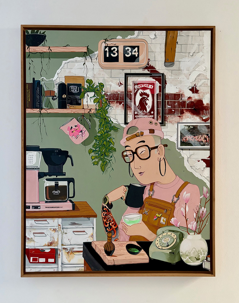 S’inspirant des estampes traditionnelles japonaises — combats, geishas, ou instants suspendus du quotidien — il apporte à ces thèmes classiques une touche urbaine et résolument contemporaine.